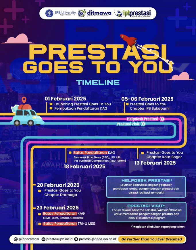 Sub Direktorat Pengembangan Reputasi dan Prestasi Mahasiswa (Subdit. PRPM) merupakan bagian dari Direktorat Kemahasiswaan IPB University. Kami memiliki semangat kerja untuk terus mendukung dan meningkatkan prestasi mahasiswa melalui beragam kegiatan kompetisi yang diselenggarakan secara nasional maupun internasional.