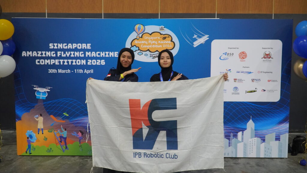 Tim robot IPB University yang tergabung dalam tim Agrisena Aerial berhasil meraih peringkat ketiga dalam ajang internasional Singapore Amazing Flying Machine Competition (SAFMC). Awarding SAFMC diselenggarakan di Singapore EXPO, Hall 2B, pada 11 April 2026, sebagai puncak dari rangkaian kompetisi yang dilaksanakan selama tiga hari pada 30 Maret s.d. 1 April 2026.